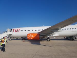 Op Schiphol ging alles op rolletjes. We waren er zo doorheen. En nu wachten op de vliegreis. Deze verliep ook voorspoedig en voordat we het wisten werd de landing al ingezet.