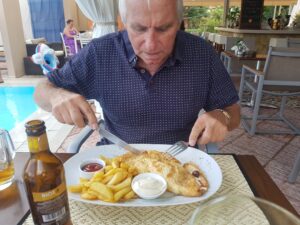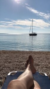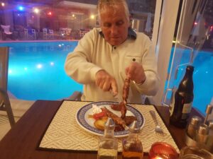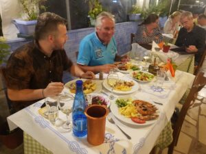 Ja en dan ’s avonds eten met Rogier erbij. Wat een ontzettende leuke ervaring. Je zoon die je zo maar komt opzoeken op Lefkas.