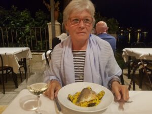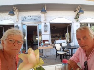 Zo genoten van deze trip. Mooi weer, blauwe zee, wat wil je nog meer. ’s Middags aangemeerd bij een klein dorpje en daar heerlijk geluncht.