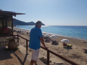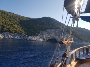 Ook aan deze boottrip kwam een eind en we kwamen heel voldaan weer terug in Nidri. Wat een mooie reis was dit. Thuis natuurlijk wachten op een teken van Rogier en we waren benieuwd wat hij deze dag had gedaan. Enorm enthousiast kwam hij thuis met prachtige foto’s van de westkust. Hij had genoten.