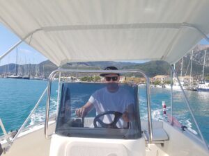Rogier had een boot gehuurd en na het ontbijt liepen we naar de haven. Daar lag onze boot klaar. Super man.