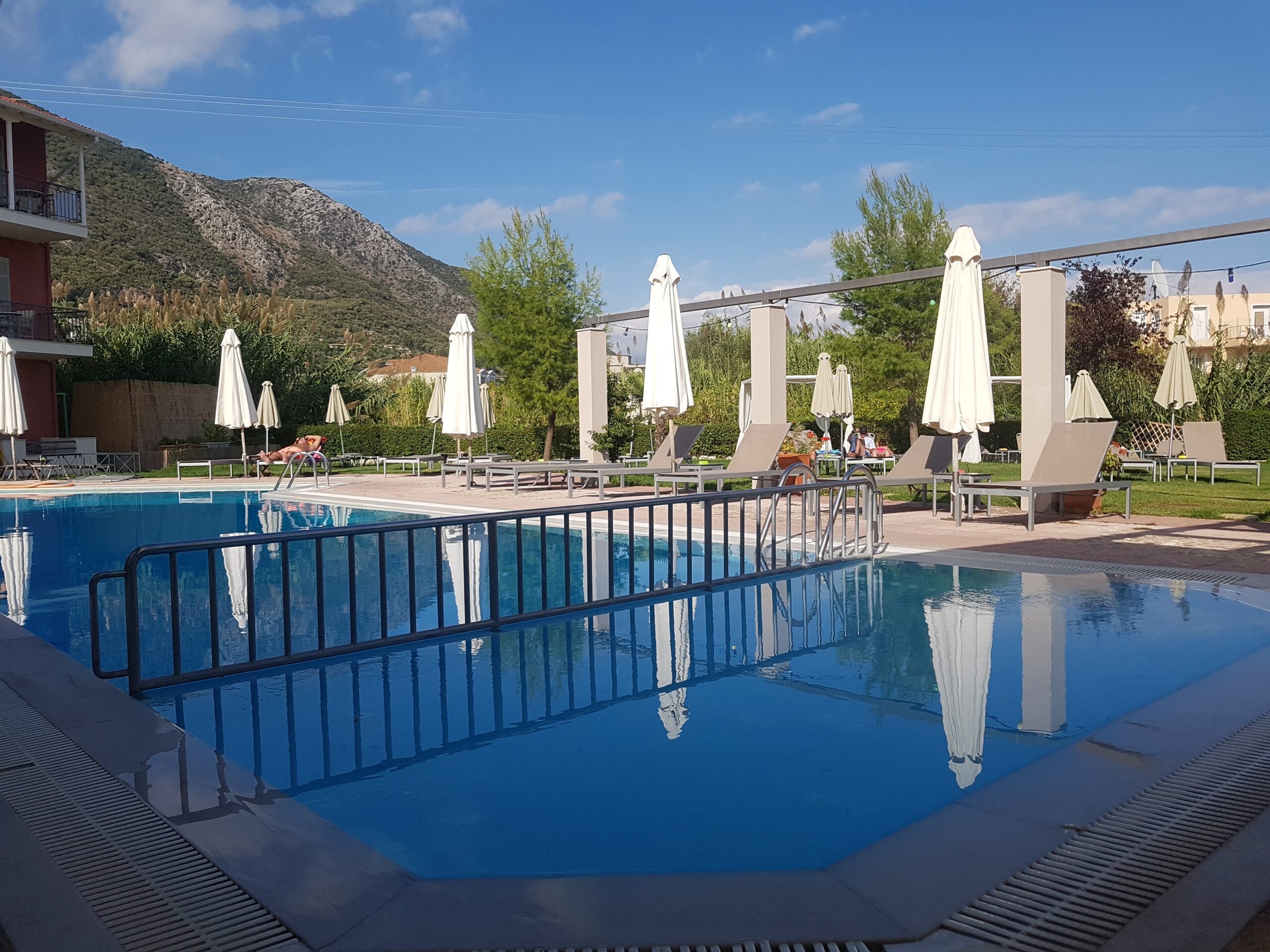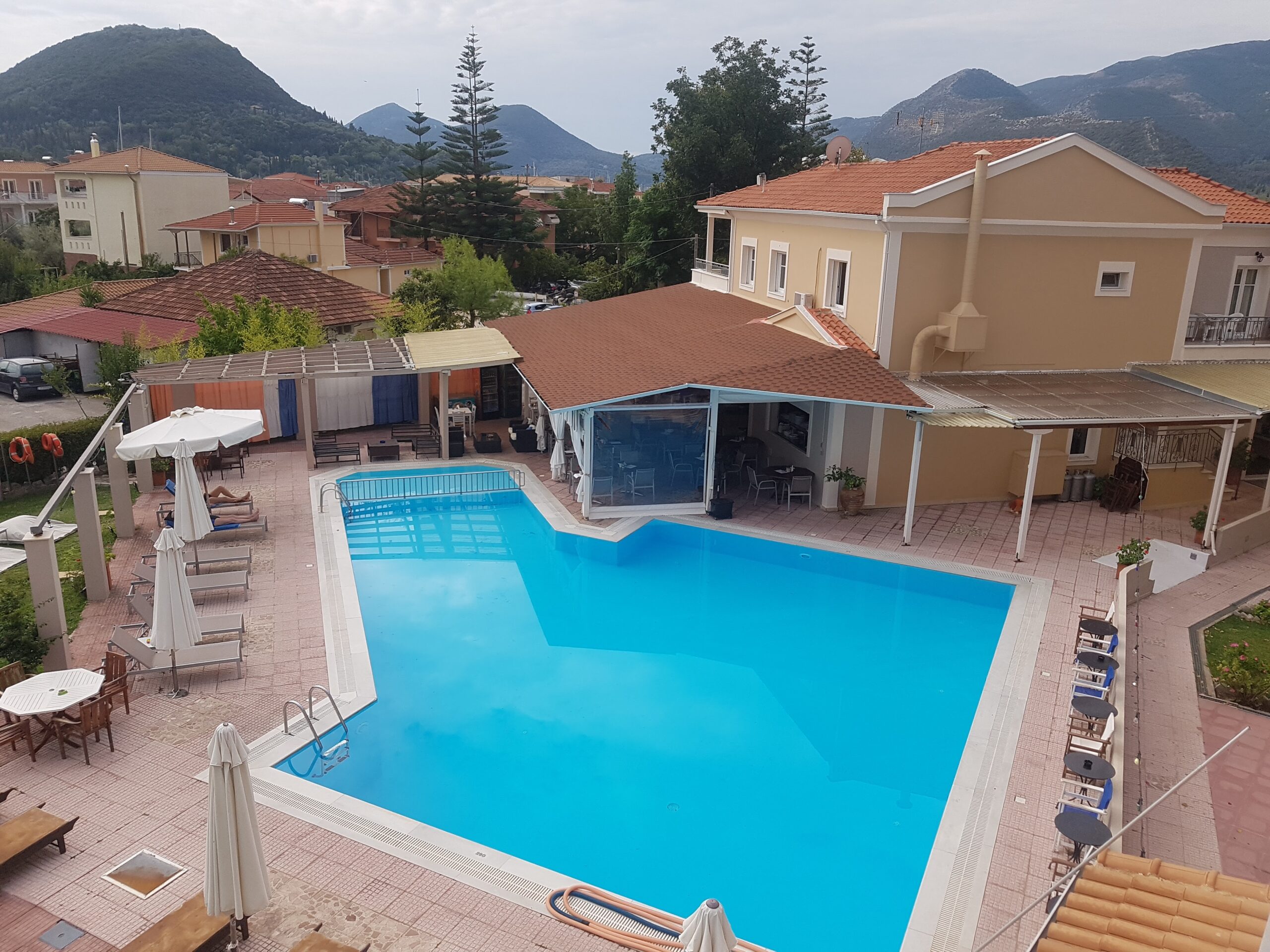 Een gezellig klein complex, met een gezellig terras met restaurant, mooi zwembad en wij werden naar onze kamer gebracht. Klein maar simpel. Maar wel met een terrasje met uitzicht op het zwembad.