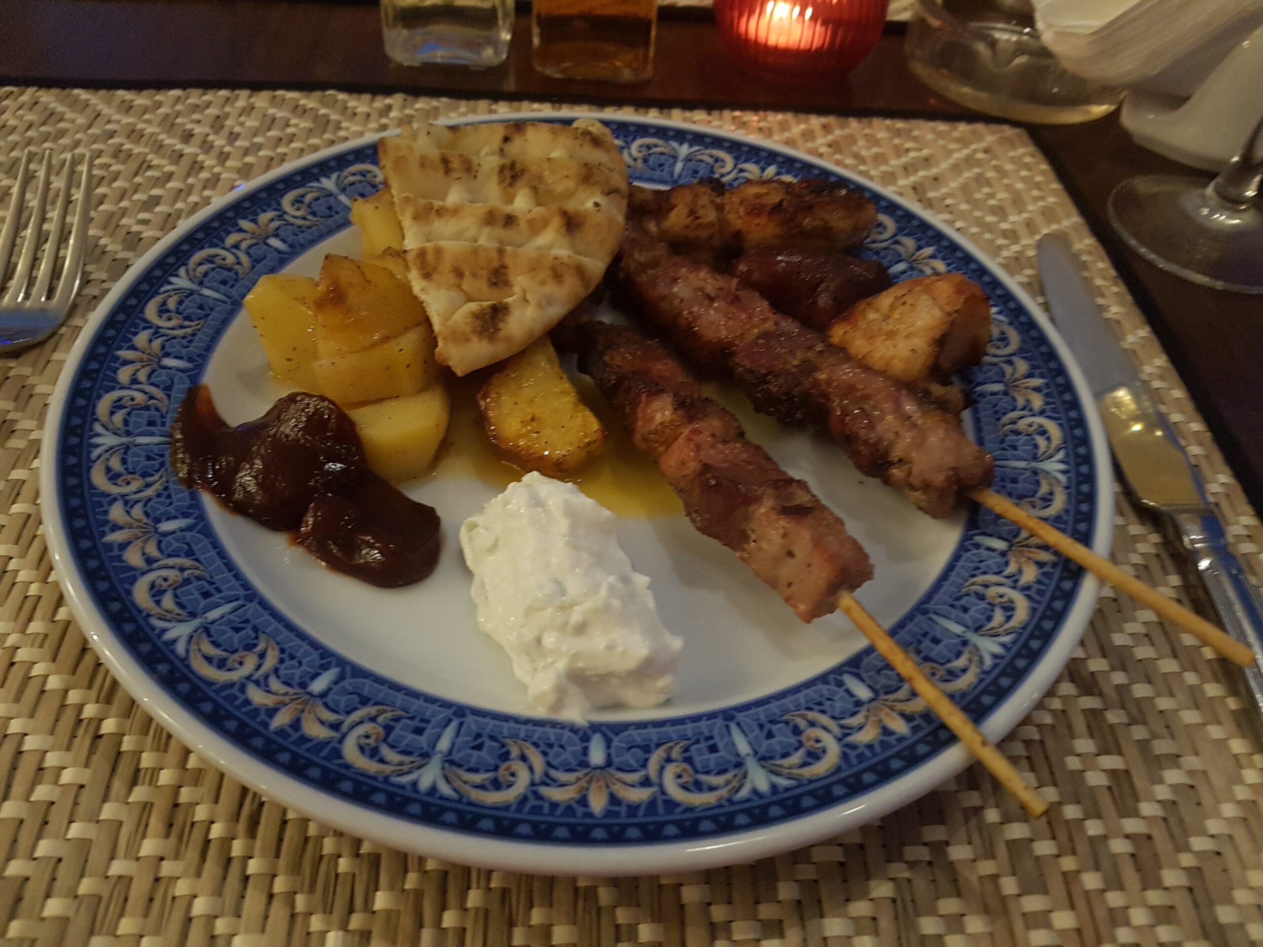 De hele vakantie geen Grieks toetje gegeten en de kok van Roots heeft dit speciaal voor mij klaargemaakt. Het stond namelijk niet op de kaart maar ik heb het toch gegeten, heerlijk. Griekse yoghurt met honing en walnoten.