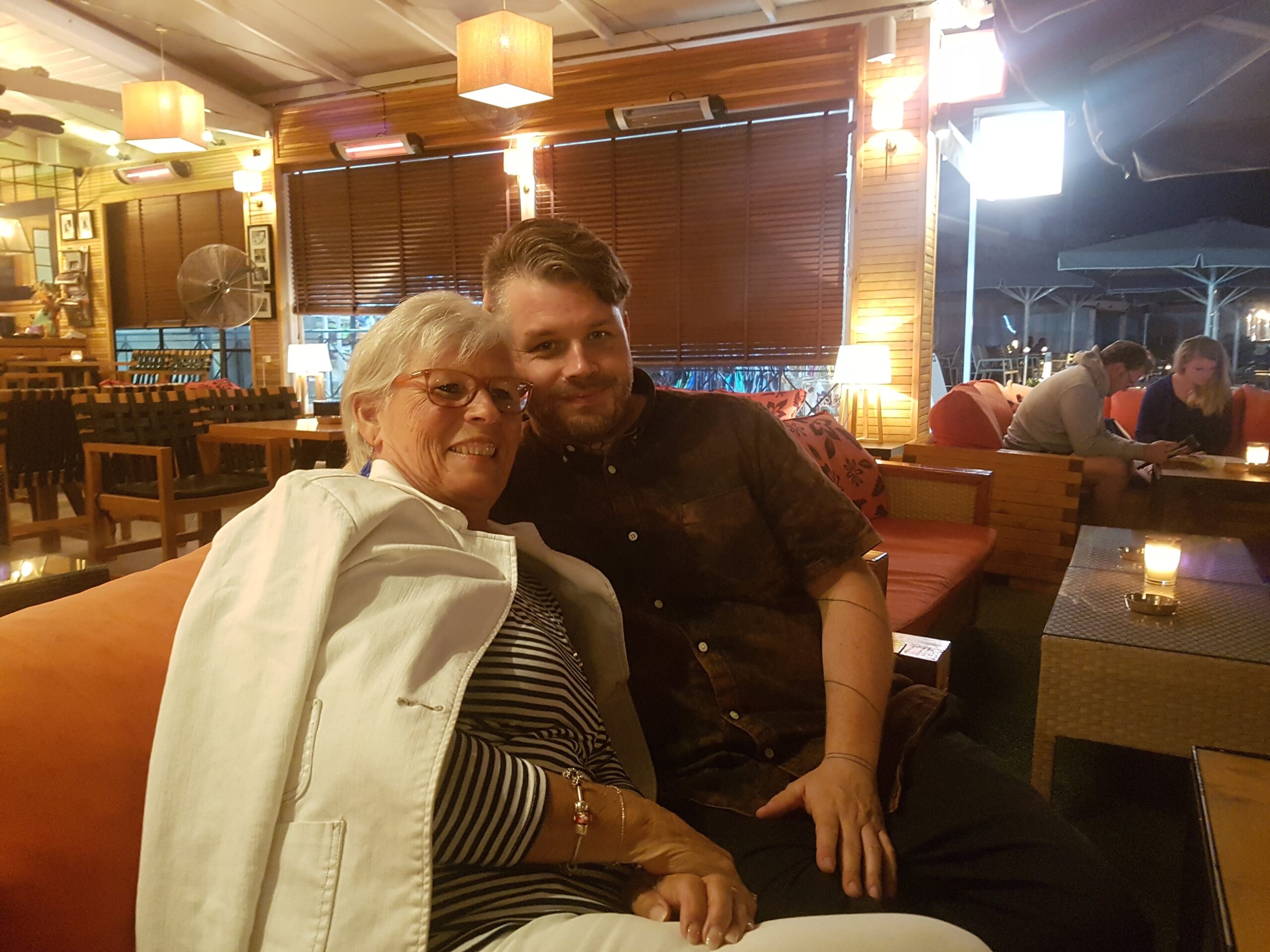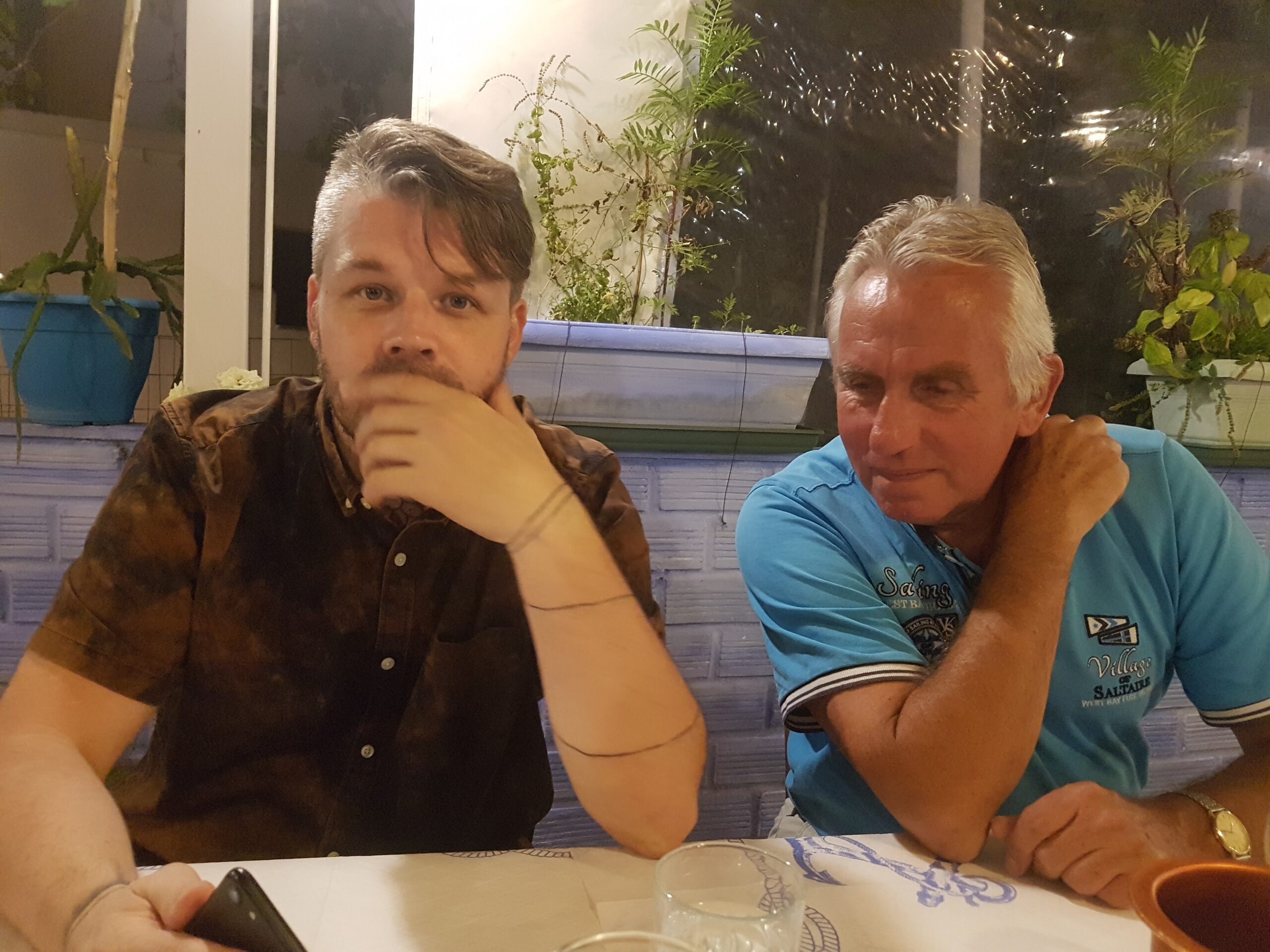 Ja en dan ’s avonds eten met Rogier erbij. Wat een ontzettende leuke ervaring. Je zoon die je zo maar komt opzoeken op Lefkas.