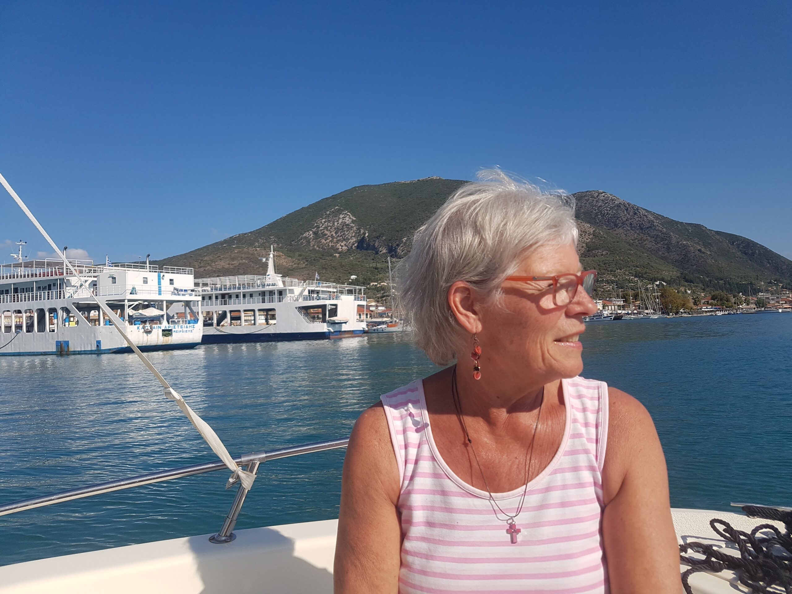 Wij hadden vorige week al een boottrip geboekt en Rogier kon mee maar wilde toch het eiland op zijn manier verkennen. Dus ’s morgens in alle vroegte (8.30 uur) gingen wij op weg naar de haven om in te schepen op MS Christina. Weer een dag op het water dus. Maar het was een hele andere dag dan gisteren. Een mooi schip met alle faciliteiten aan boord.