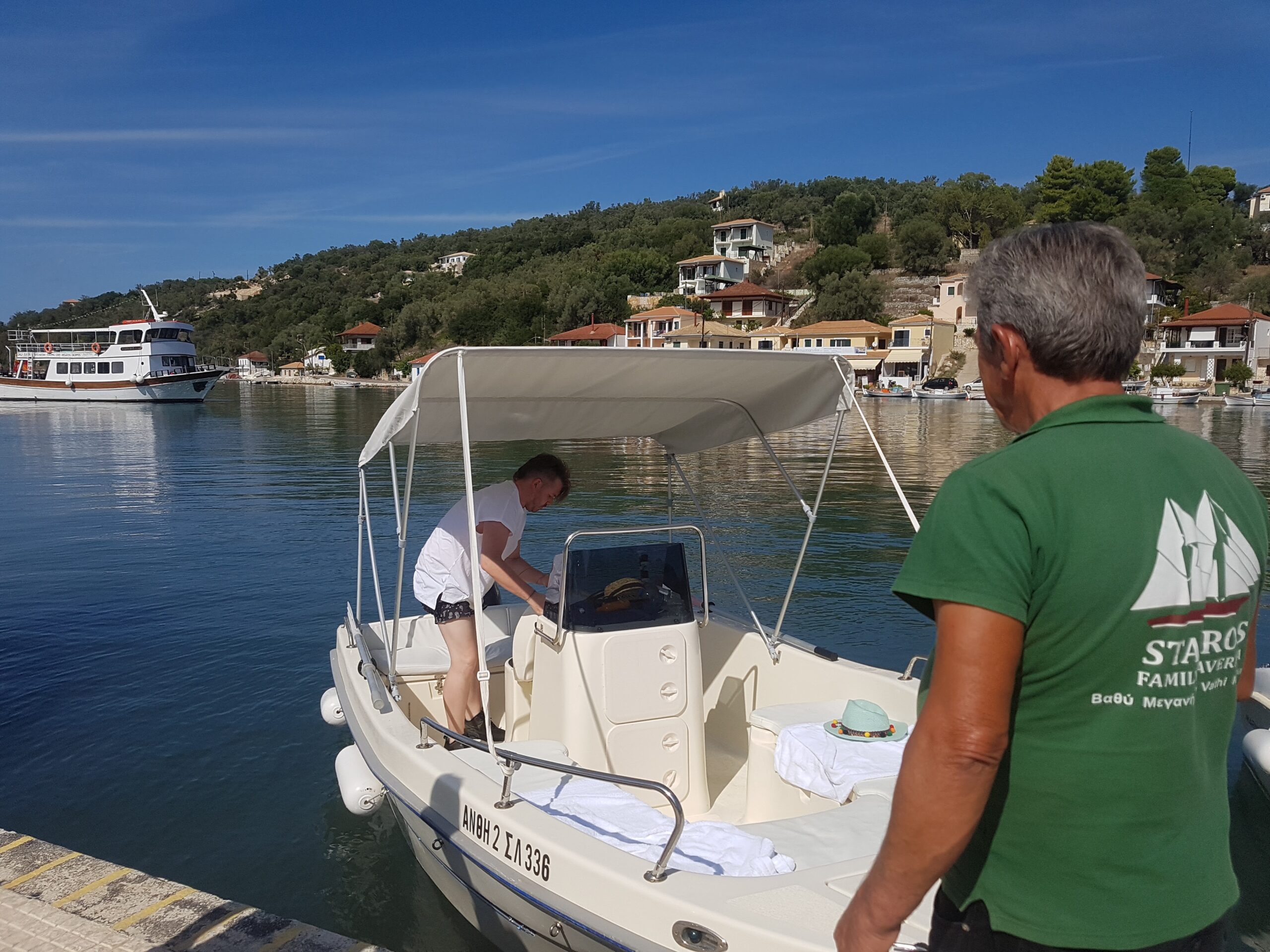 Rogier had een boot gehuurd en na het ontbijt liepen we naar de haven. Daar lag onze boot klaar. Super man.